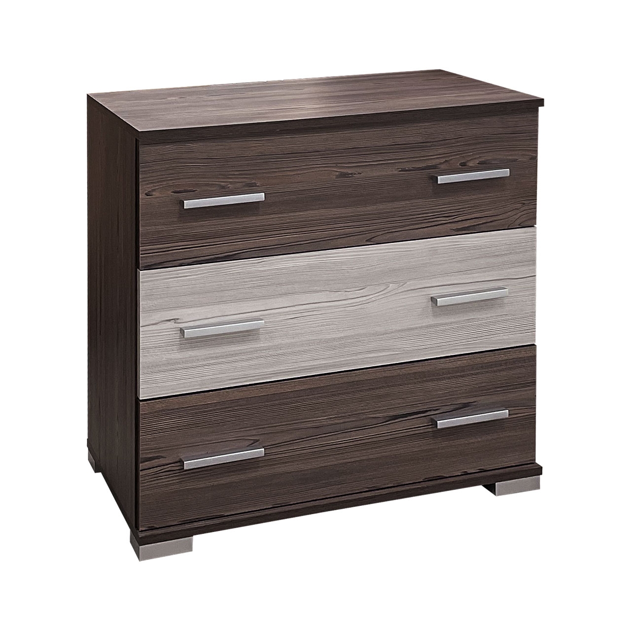Komód 18 mm vastag bútorlapból. Tartósságát az éleken használt, hatékony ABS élfólia biztosítja. Maximális helykihasználást a 3 fiók biztosítja. (A fogók és a lábak változtatási jogát fenntartjuk.)Termékadatok:Méret: 83 x 80 x 40 cm (magasság x szélesség x mélység) Bútorlap vastagsága: 18 mm Kivitel: összeszerelt Élzárás: 0,5 mm ABS Hátlemez: 3 mm HDF