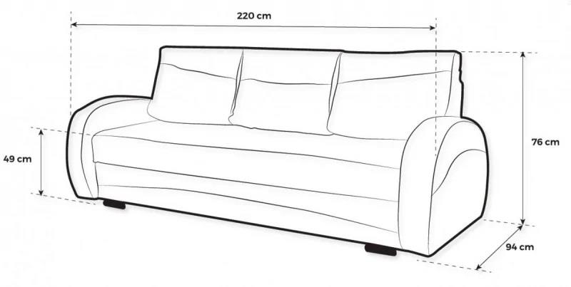 külső méret: 84 × 94 cm, ülőmagasság: 44 cm, beülőmélység (párnával): 55 cm, beülőmélység: 75 cm, háttámlamagasság: 74 cm