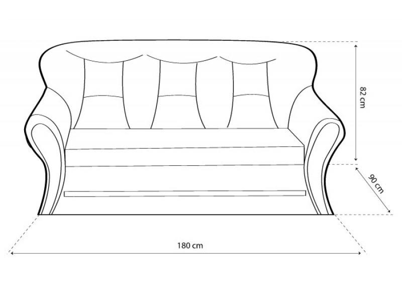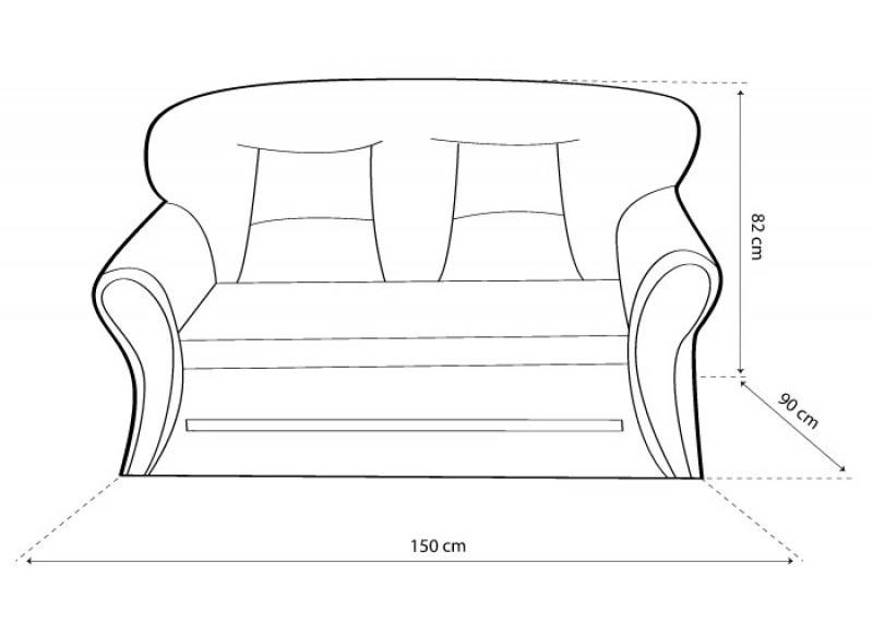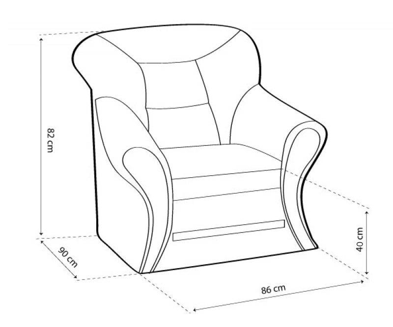 külső méret: 86 × 90 cm, ülőmagasság: 40 cm, beülőmélység: 56 cm, háttámlamagasság: 82 cm