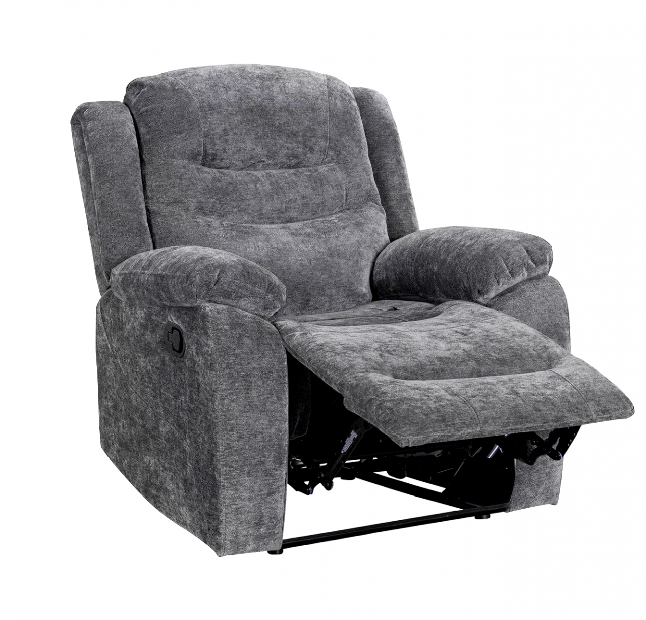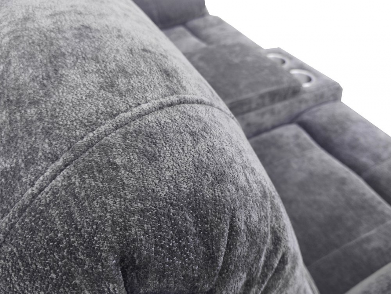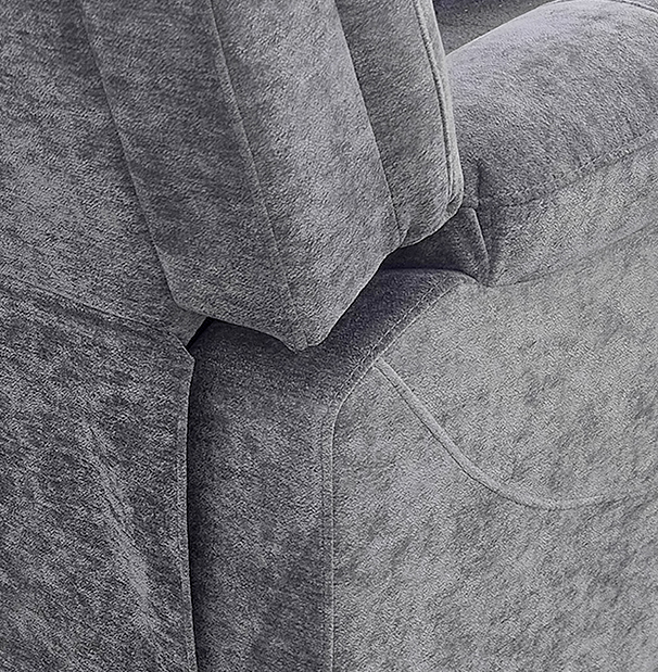 hátulja szövettel bevonva, tárolórekesz a kartámlában, dupla pohártartó, állítható lábtartó, kanapé középső ülőrésze fix, hullámrugós, szövet