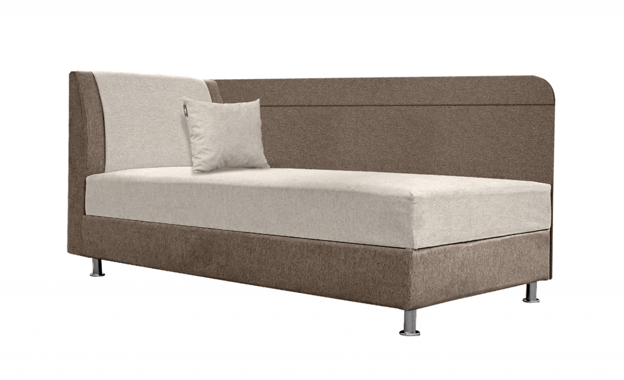 jobbos-balos állásban rendelhető, fehér laminált ágyneműtartó, 10 cm-es króm láb, vízlepergető szövet, extra rugós, ágyneműtartós