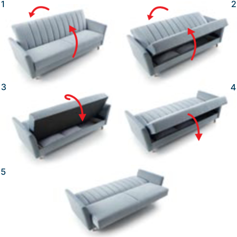 • Magasfekhelyes Az ülő és fekvő magasság megegyezik. Fekvőhellyé alakítva ugyanaz marad a kanapé/sarokülő magassága mint zárt állapotban.