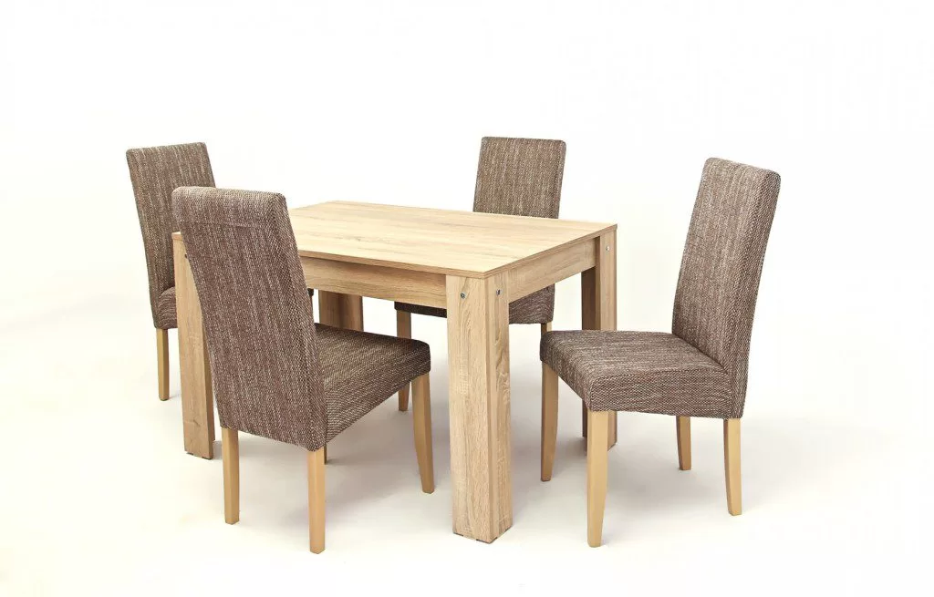 KEBU4 asztal 120-as Sonoma + 4 db BAFA6 szék Világos Barna szövet/Sonoma