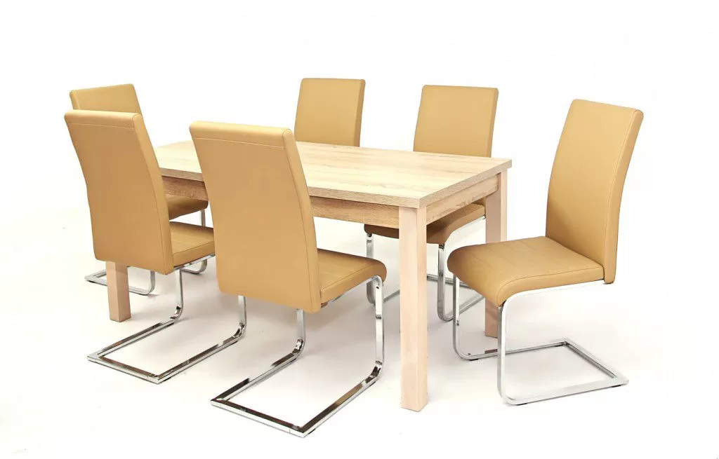 KUDA3 asztal 160-as Sonoma + 6 db DACU4 szék Beige