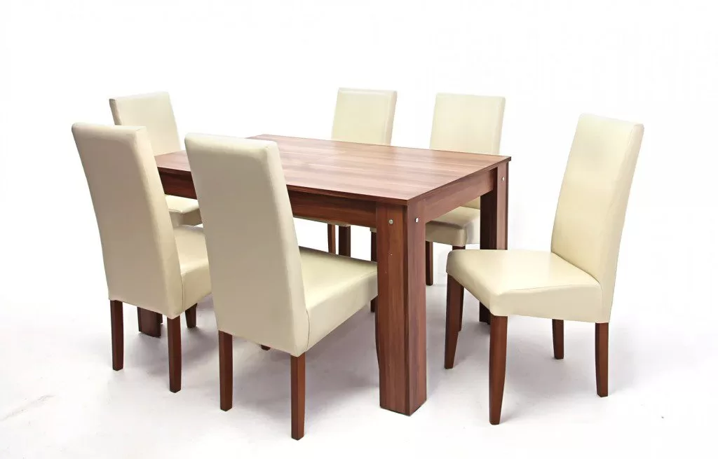 Az asztallap és a lábak faforgácslapból, élfólia élzárással. Nagyobbítás fém vasalattal. Méret: 90 x 135+(35) x 76 cm (Szélesség x Hosszúság x Magasság) Bruttó súly : 37,1 kg Csomagolás : 1 db / 1 dobozTömörfa szerkezet, pácolva, lakkozva, műbőr kárpitos hátlappal és ülőlappal. Méret: 98 x 47 x 47 x 40 cm (magasság x ülőfelület magasság x ülőfelület szélesség x ülőfelület mélység) Bruttó súly : 8,2 kg Csomagolás : 2 db/kartondoboz