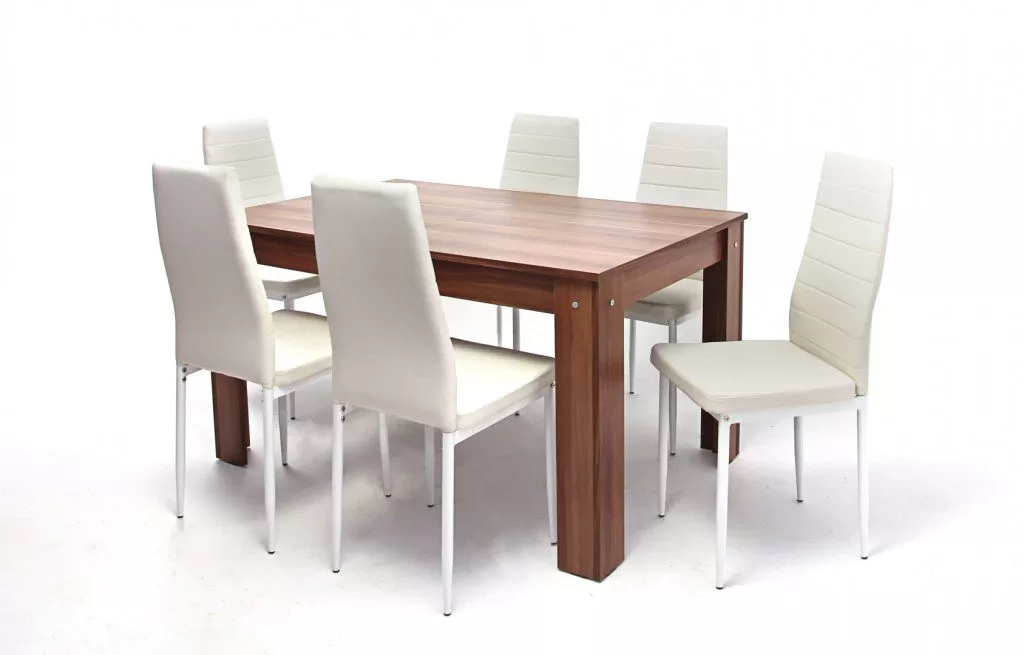 Az asztallap és a lábak faforgácslapból, élfólia élzárással. Nagyobbítás fém vasalattal. Méret: 90 x 135+(35) x 76 cm (Szélesség x Hosszúság x Magasság) Bruttó súly : 37,1 kg Csomagolás : 1 db / 1 dobozFestett fém szerkezet, műbőr kárpitozott hát és ülőlappal. Összeszerelést igényel. Méret: 97 x 49 x 42 x 42 cm (magasság x ülőfelület magasság x ülőfelület szélesség x ülőfelület mélység) Bruttó súly : 4,5 kg Csomagolás : 4 db/kartondoboz