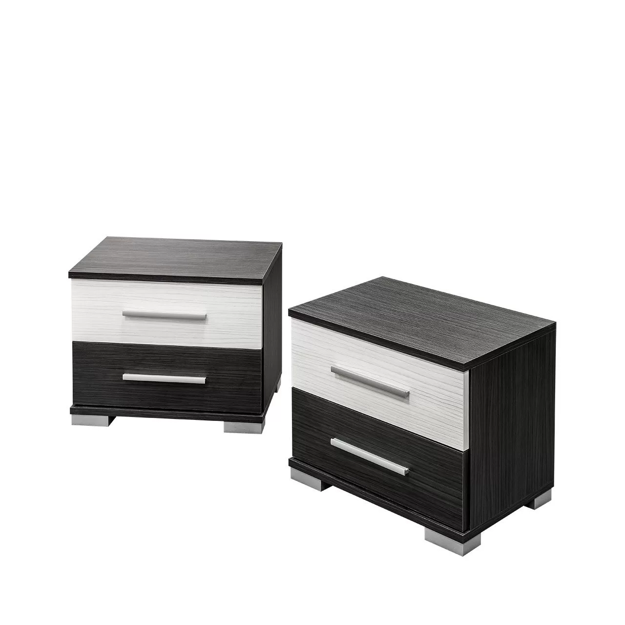 2 fiókos éjjeliszekrény bútorlapból. Tartósságát az éleken használt, hatékony ABS élfólia biztosítja. Maximális helykihasználást a 2 fiók biztosítja. (A fogók és a lábak változtatási jogát fenntartjuk.)