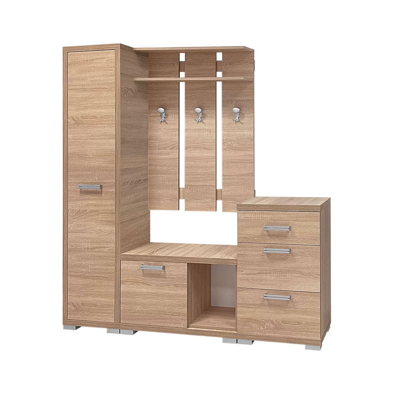 Képzeld el, hogy lépsz be az otthonodba, és azonnal találkozol egy bútorral, ami nem csak praktikus, de elegáns és stílusos is. A 3 részes előszobaszekrényünk pont ilyen, amely különlegességével és funkcionalitásával emeli otthonod színvonalát.A bútor 18 mm vastag bútorlapból készült, és tartósságát az éleken használt ABS élfólia biztosítja. Ebben a bútorban minden apró részletre odafigyeltünk, hogy tökéletes kombinációt nyújtsunk a tartósság és az esztétika között.A baloldali ruhásszekrényben 4 polc található, amelyek maximalizálják a helykihasználást. Itt rendezheted el kedvenc kiegészítőidet, cipőidet vagy akár napi viseletedet is. Minden fontos dolog kéznél lesz ebben a praktikus részben.De itt még nincs vége! A bútor másik részei lenyíló ajtóval rendelkeznek, hogy stílusosan tárold cipőidet és apróbb tárgyaidat. Az ajtók mögött található rejtett világ készen áll arra, hogy rendezetten tárold mindazt, amire szükséged van.Ez a bútor nem csak egy bútordarab, hanem otthonod szerves része, ami mindig segít rendet tartani és eleganciát sugároz. Ne hagyd ki ezt a lehetőséget, hogy az előszobád stílusosan és rendszerezetten ragyogjon! Vásárold meg most, és éld meg a kényelmet és a kifinomultságot a mindennapokban!Termékadatok: