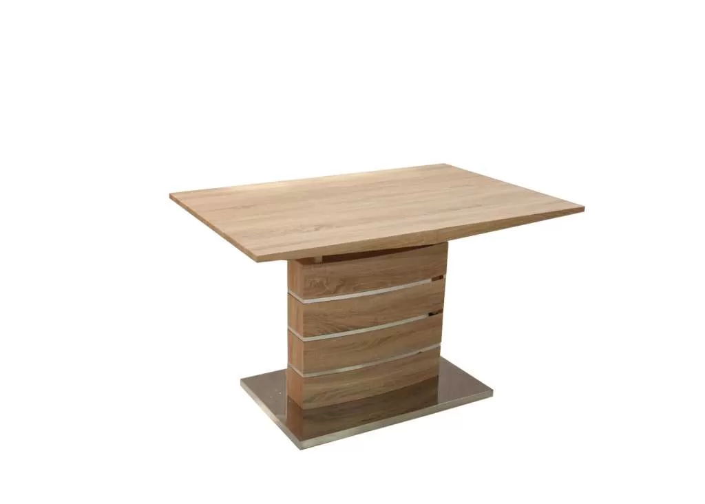 Az asztal lapja fóliázott MDF, bővítése speciális billenő mechanikával és erős bovdenes vasalattal történik. A talp és a díszítő elemek anyaga saválló lemez. Összeszerelést igényel. Kétféle méretben sonoma színben raktárról rendelhető. Méret: 90 x 120+(40) x 75 cm (Szélesség x Hosszúság x Magasság) Bruttó súly : 55 kg Csomagolás : 1 db / 3 doboz