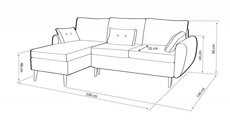 külső méret: 228 x 156 cm, fekvőfelület: 200 x 140 cm, ülőmagasság: 48 cm, beülőmélység (párnával): 55 cm, háttámlamagasság: 43 cm, teljes magasság: 90 cm