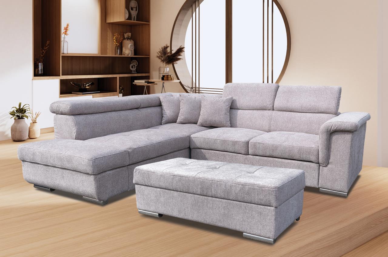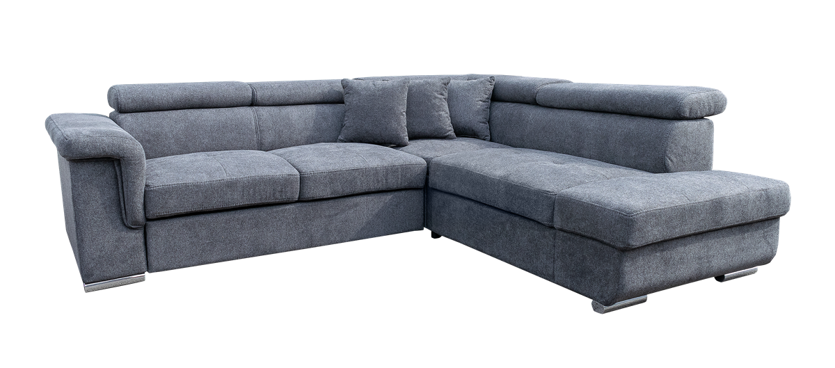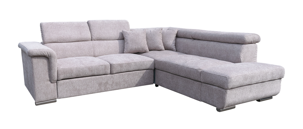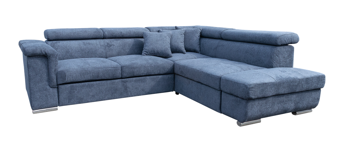 jobbos-balos állásban rendelhető, hátulja szövettel bevonva, kiemelő mechanika, hullámrugós, szövet, ágyazható, ágyneműtartós, állítható fejtámla, 250 – 300 cm szélesség között