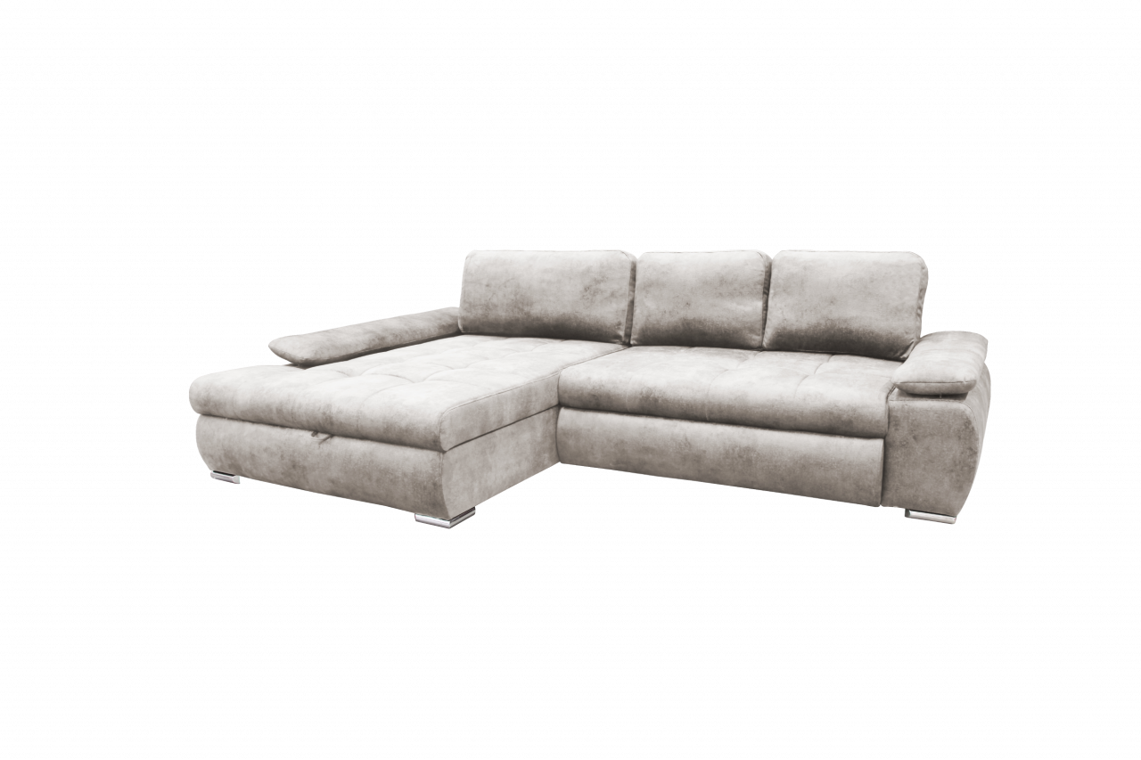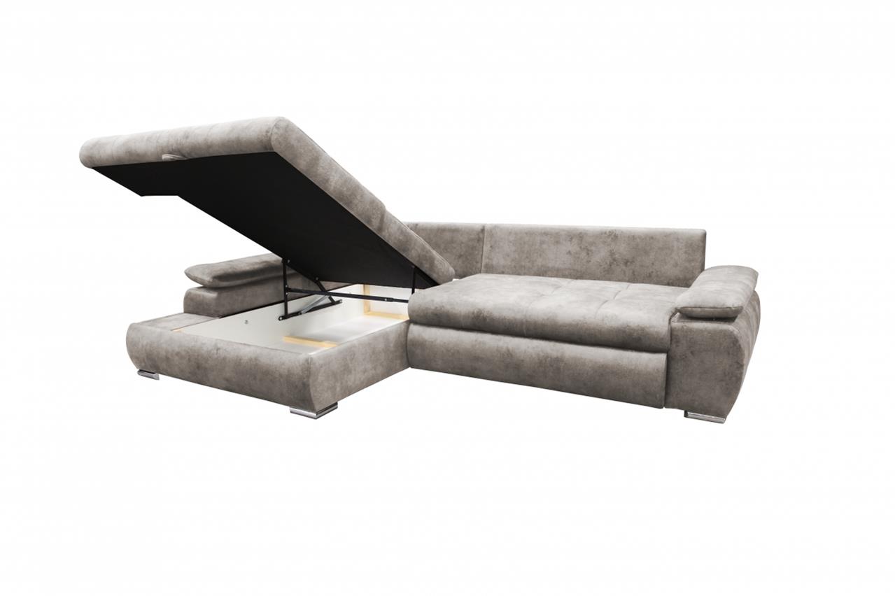 magas fekhelyes, jobbos-balos állásban rendelhető, hátulja szövettel bevonva, kiemelő mechanika, hullámrugós, szövet, ágyazható, ágyneműtartós, állítható kartámla, 250 – 300 cm szélesség között