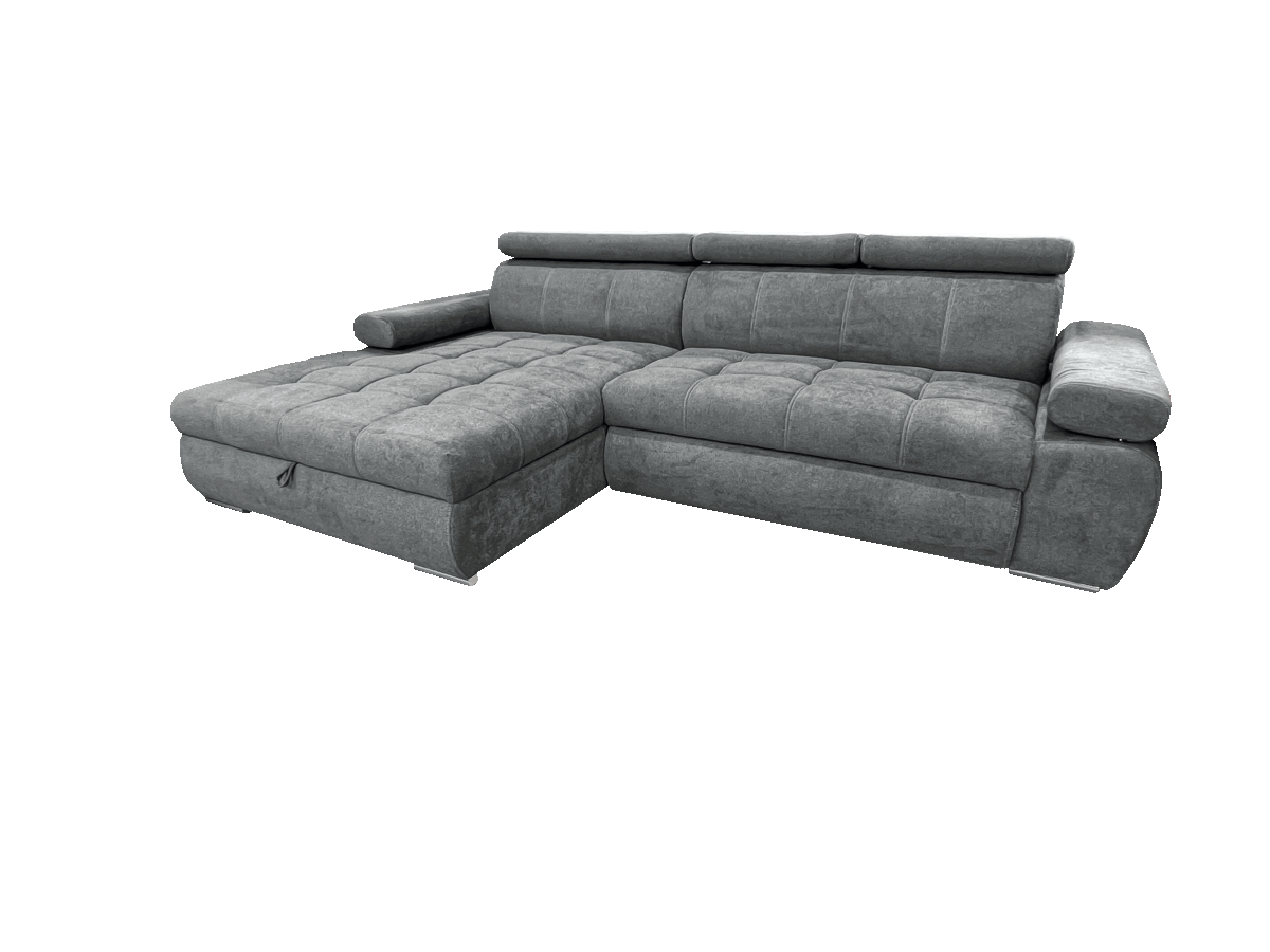 magas fekhelyes, jobbos-balos állásban rendelhető, hátulja szövettel bevonva, kiemelő mechanika, hullámrugós, szövet, ágyazható, ágyneműtartós, állítható fejtámla, állítható kartámla, 250 – 300 cm szélesség között