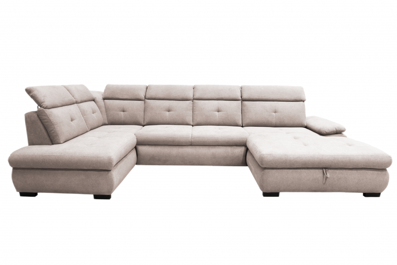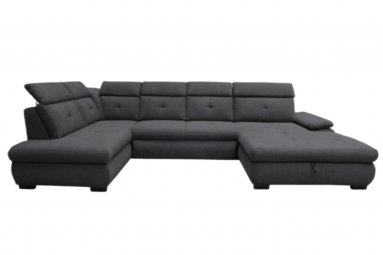 magas fekhelyes, képpel azonos vagy ellentétes állásban rendelhető, hátulja szövettel bevonva, kiemelő mechanika, hullámrugós, szövet, ágyazható, ágyneműtartós, állítható fejtámla, állítható kartámla, 300 cm szélesség fölött