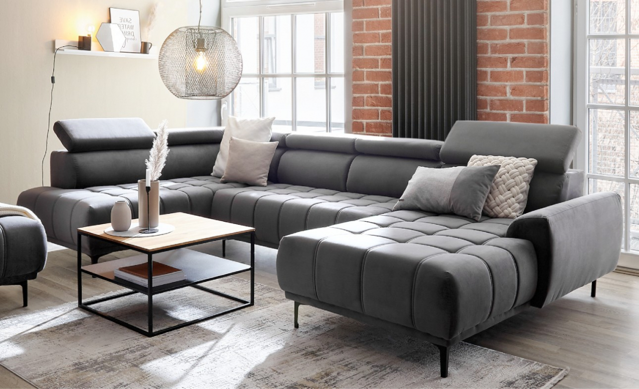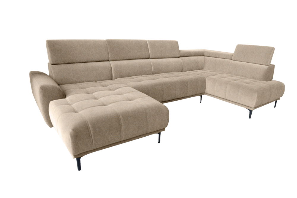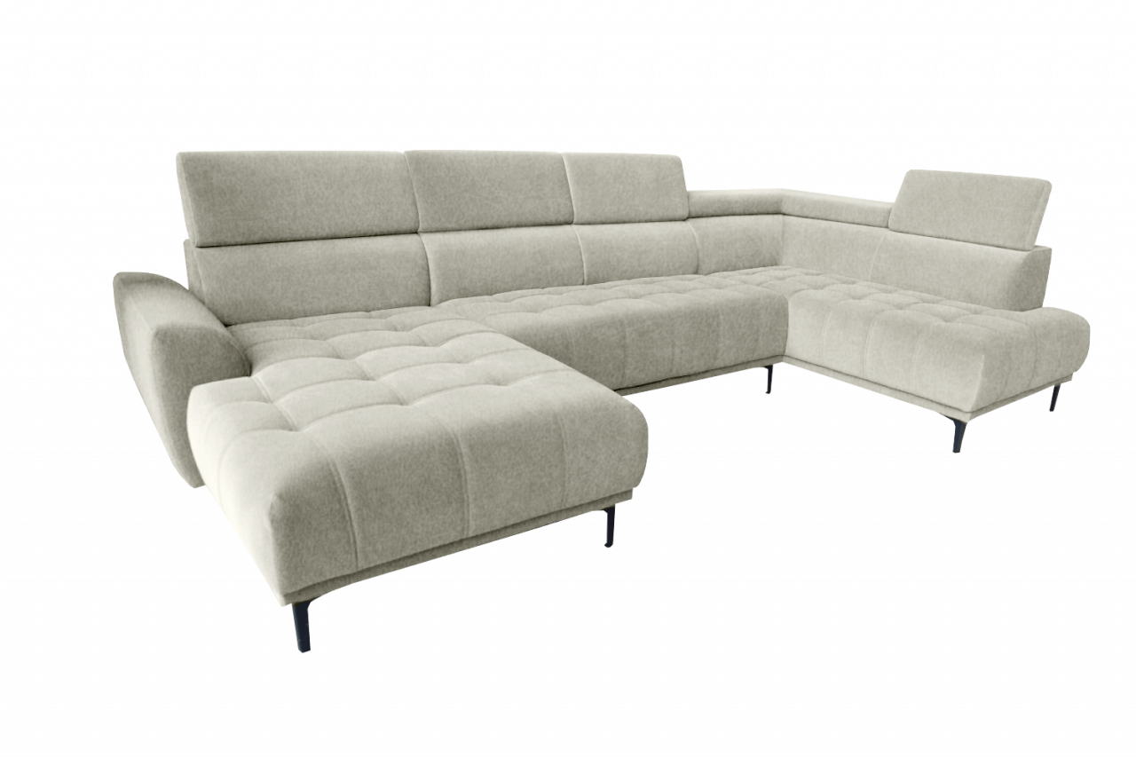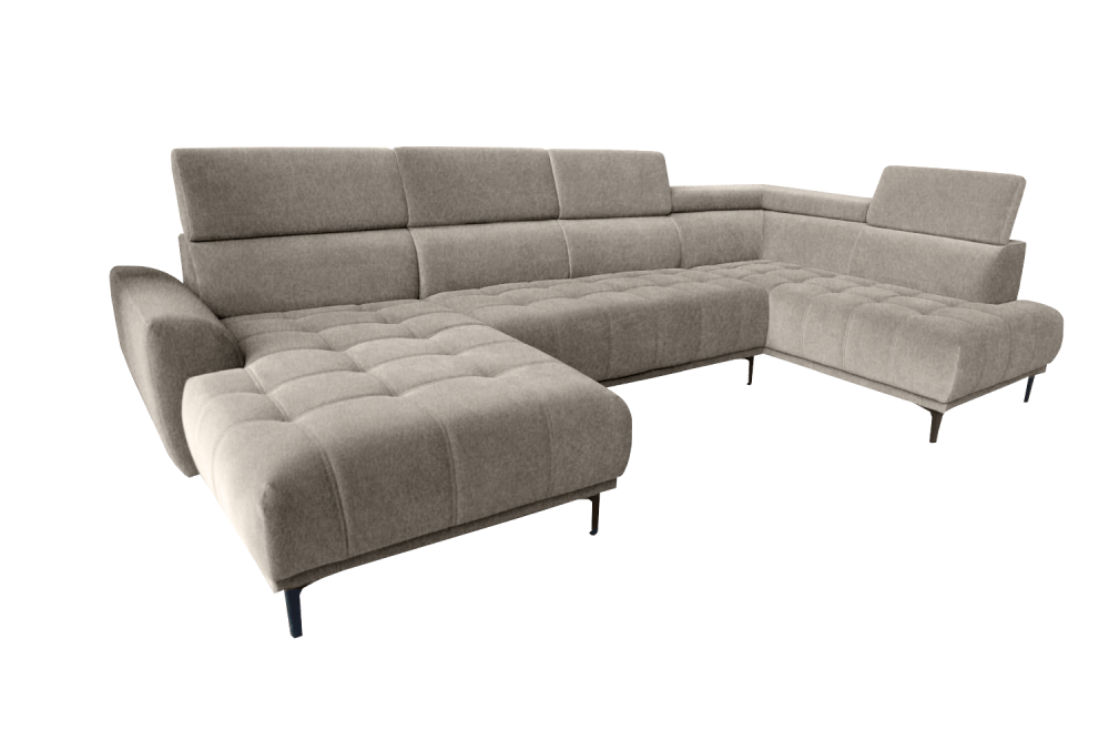 képpel azonos vagy ellentétes állásban rendelhető, hátulja szövettel bevonva, hullámrugós, szövet, állítható fejtámla, 300 cm szélesség fölött A díszpárna nem tartozék.