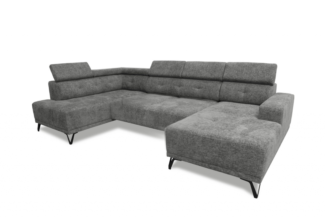magas fekhelyes, képpel azonos vagy ellentétes állásban rendelhető, hátulja szövettel bevonva, elektromosan egyszemélyes fekhellyé alakítható, táskarugós, HR habszivacs, állítható beülőmélység, hullámrugós, szövet, ágyazható, állítható fejtámla