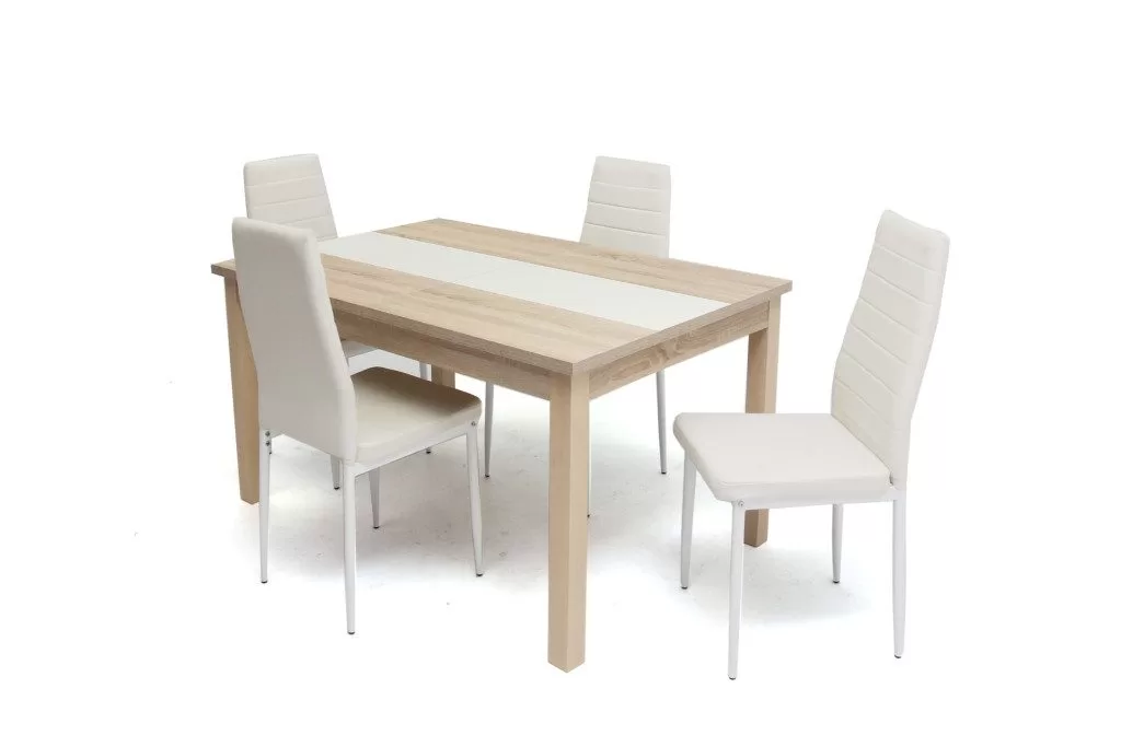 YEKA8 asztal 135-ös Sonoma/Bézs + 4 db szék Fehér XEVE6
